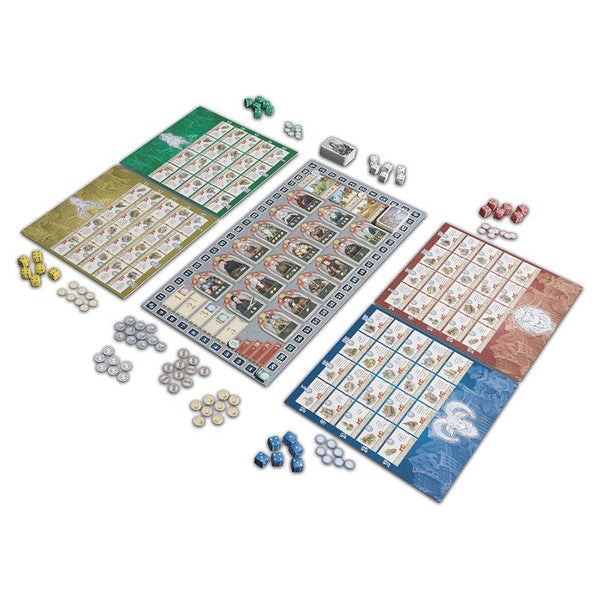 RICH CONTENT: Includes 1 game board, 5 province sheets, 15 player dice, 60 goods tokens, 120 building tokens, enemy and governor cards, and more.