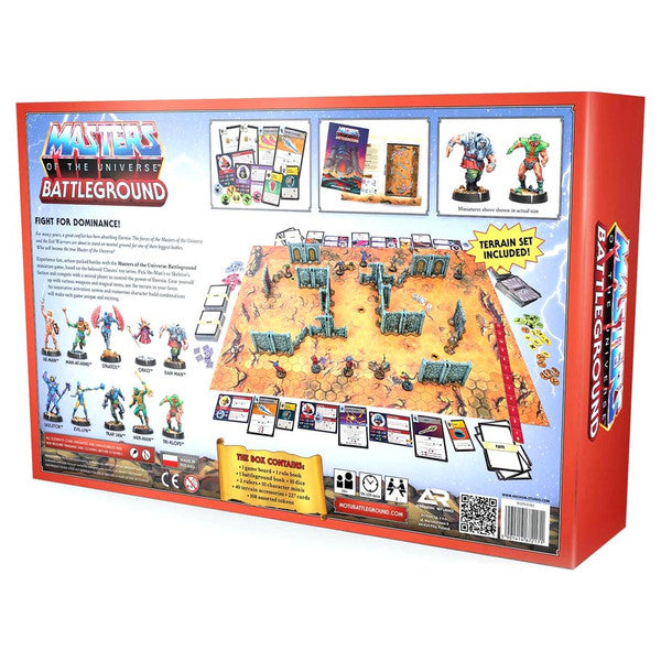 Experience fast, action-packed battles with the Masters of the Universe™: Battleground miniature game, based on the beloved 'Classics' toy series. Pick He-Man's or Skeletor's faction and compete with a second player to control the power of Eternia. Gear yourself up with various weapons and magical items, use the terrain in your favor. An innovative activation system and numerous character build combinations will make each game unique and exciting.