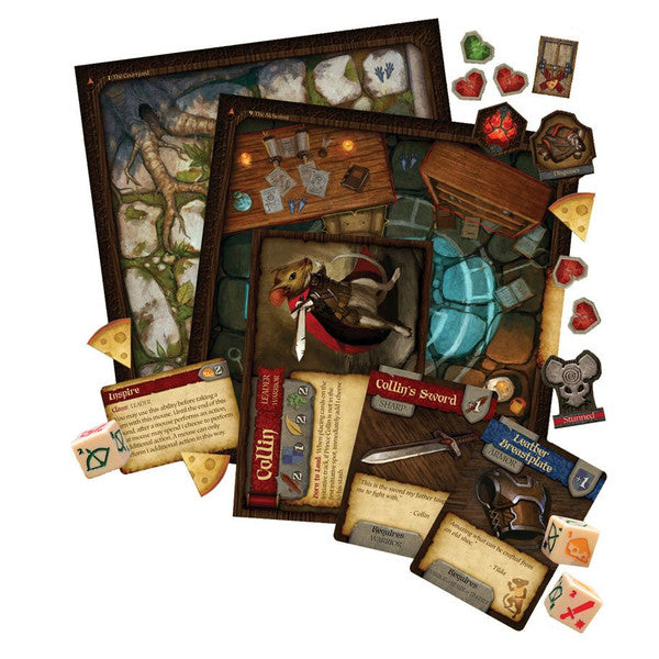 In Mice and Mystics, players take on the roles of those still loyal to the king – but to escape the clutches of Vanestra, they have been turned into mice! Play as cunning field mice who must race through a castle now twenty times larger than before. The castle would be a dangerous place with Vanestra's minions in control, but now countless other terrors also await heroes who are but the size of figs. Play as nimble Prince Collin and fence your way past your foes, or try Nez Bellows, the burly smith. Confound your foes as the wizened old mouse Maginos, or protect your companions as Tilda, the castle's former healer. Every player will have a vital role in the quest to warn the king, and it will take careful planning to find Vanestra's weakness and defeat her.